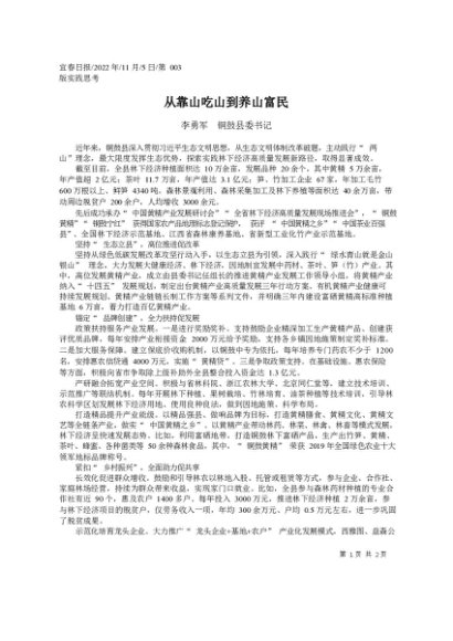 / 署名文章:2022.11.05李勇军铜鼓县委书记:从靠山吃山到养山富民