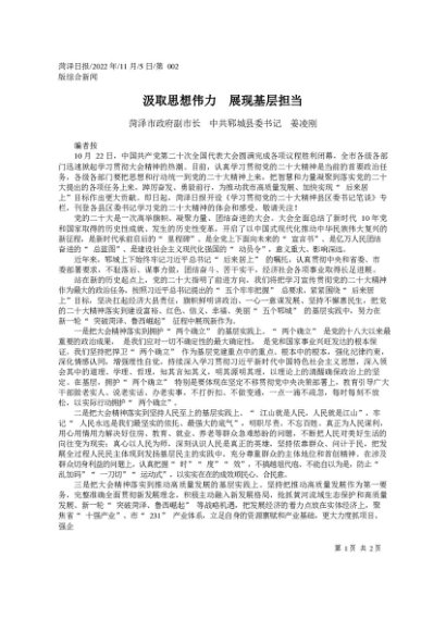 / 署名文章:2022.11.05菏泽市政府副市长中共郓城县委书记姜凌刚:汲取思想伟力展现基层担当
