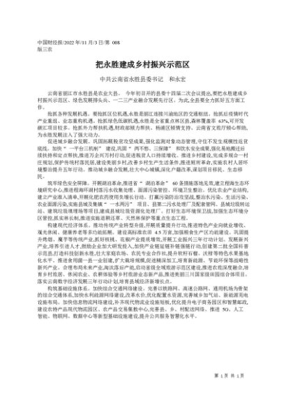 署名文章:2022.11.03中共云南省永胜县委书记和永宏:把永胜建成乡村振兴示范区