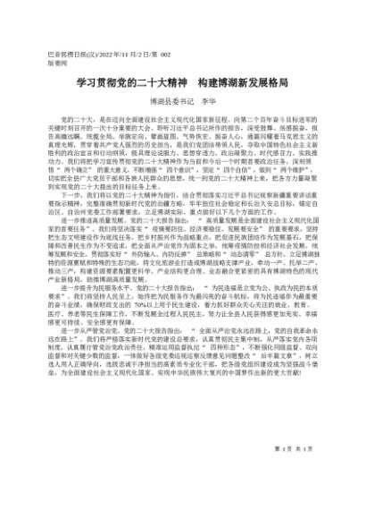 / 署名文章:2022.11.02博湖县委书记李华:学习贯彻党的二十大精神构建博湖新发展格局