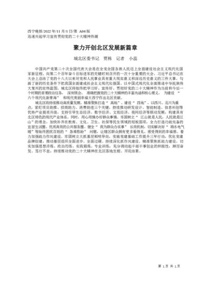 署名文章:2022.11.01城西区委书记张俊录记者张国静:建设新时代现代美丽幸福城区