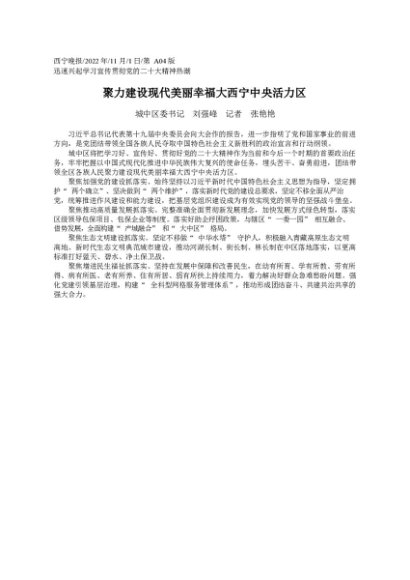 署名文章:2022.11.01城中区委书记刘强峰记者张艳艳:聚力建设现代美丽幸福大西宁中央活力区