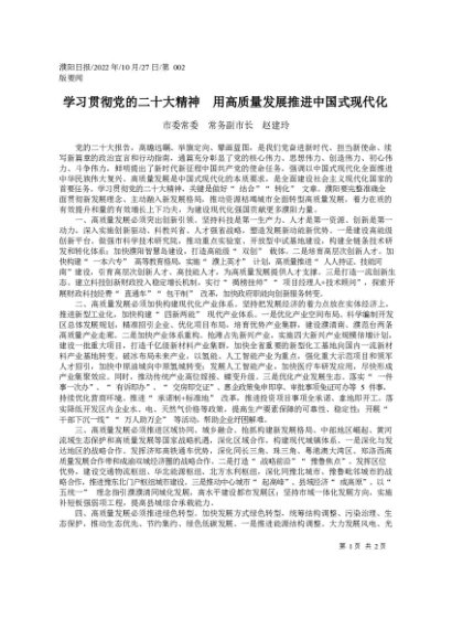 / 署名文章:2022.10.27市委常委常务副市长赵建玲:学习贯彻党的二十大精神用高质量发展推进中国式现代化