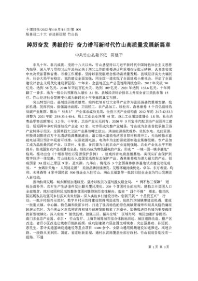 署名文章:2022.10.16中共竹山县委书记陈建平:踔厉奋发勇毅前行奋力谱写新时代竹山高质量发展新篇章