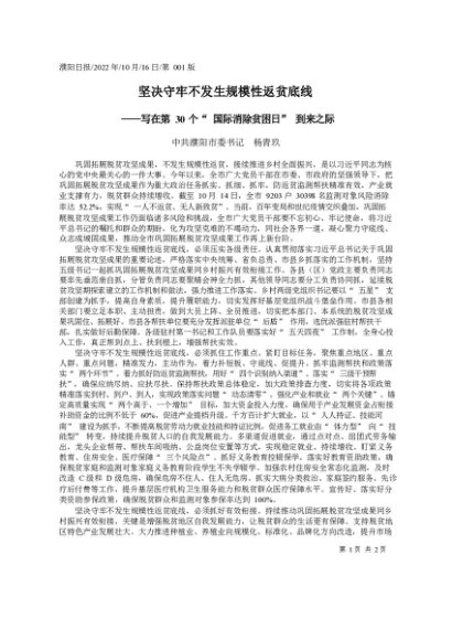 / 署名文章:2022.10.16中共濮阳市委书记杨青玖:坚决守牢不发生规模性返贫底线