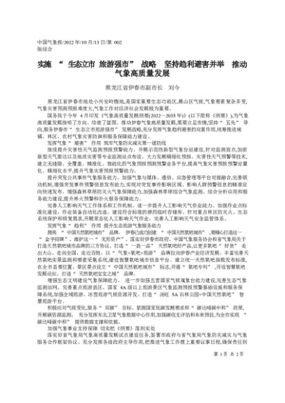 / 署名文章:2022.10.13黑龙江省伊春市副市长刘今:实施生态立市旅游强市战略坚持趋利避害并举推动气象高质量发展