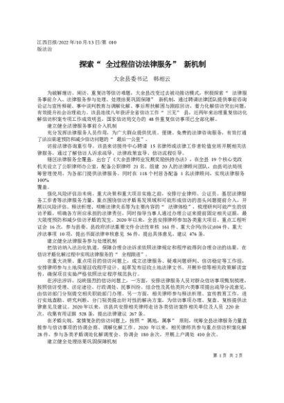 / 署名文章:2022.10.13大余县委书记韩相云:探索全过程信访法律服务新机制