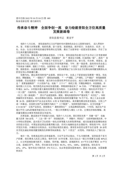 署名文章:2022.10.10昔阳县委书记黄亚平:传承奋斗精神全面争创一流奋力绘就昔阳全方位高质量发展新画卷