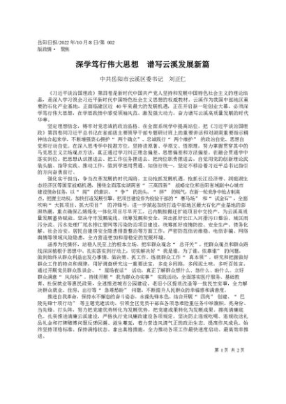 署名文章:2022.10.08中共岳阳市云溪区委书记刘正仁:深学笃行伟大思想谱写云溪发展新篇