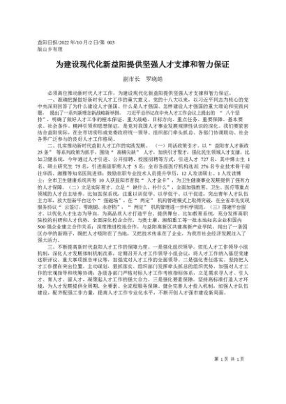 署名文章:2022.10.02副市长罗晓皓:为建设现代化新益阳提供坚强人才支撑和智力保证