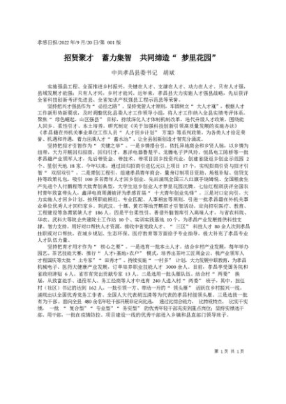 / 署名文章:2022.09.20中共孝昌县委书记胡斌:招贤聚才蓄力集智共同缔造梦里花园