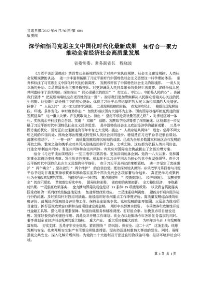 署名文章:2022.09.30省委常委、常务副省长程晓波:深学细悟马克思主义中国化时代化最新成果知行合一聚力推动全省经济社会高质量发展