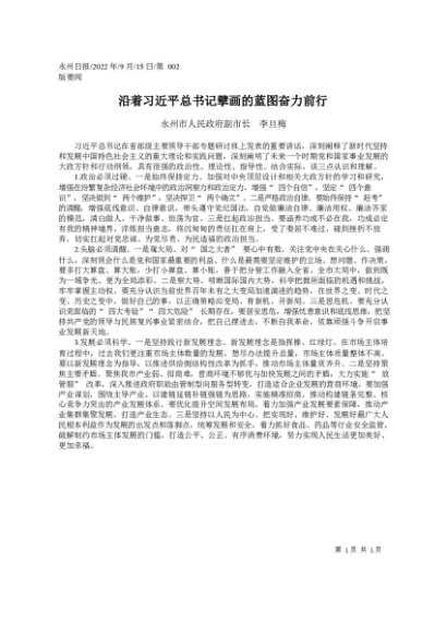 / 署名文章:2022.09.15永州市人民政府副市长李旦梅:沿着习近平总书记擘画的蓝图奋力前行