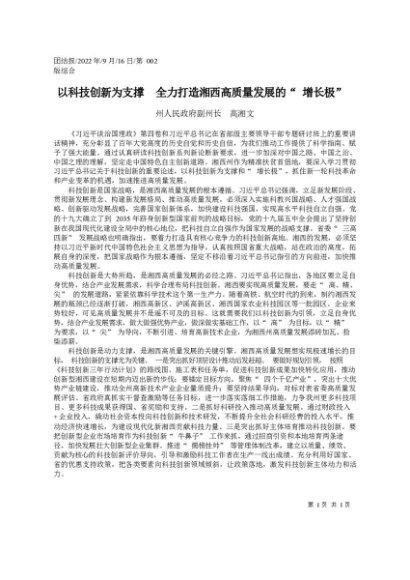 / 署名文章:2022.09.16州人民政府副州长高湘文:以科技创新为支撑全力打造湘西高质量发展的增长极