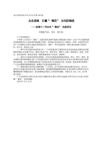 署名文章:2022.09.14市委副书记、市长徐仁标:众志成城打赢梅花台风防御战