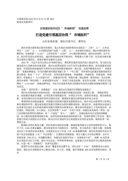 署名文章:2022.09.12山东省委常委、烟台市委书记傅明先:打造党建引领基层治理市域标杆