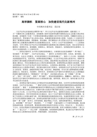 署名文章:2022.08.30中共郴州市委书记吴巨培:高举旗帜紧跟核心加快建设现代化新郴州