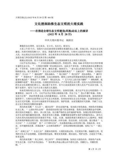 / 署名文章:2022.08.29中共大理州委书记杨国宗:文化浸润助推生态文明的大理实践