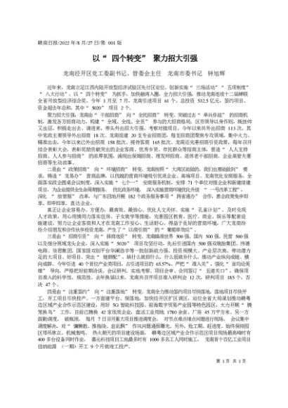 署名文章:2022.08.27龙南经开区党工委副书记、管委会主任龙南市委书记钟旭辉:以四个转变聚力招大引强