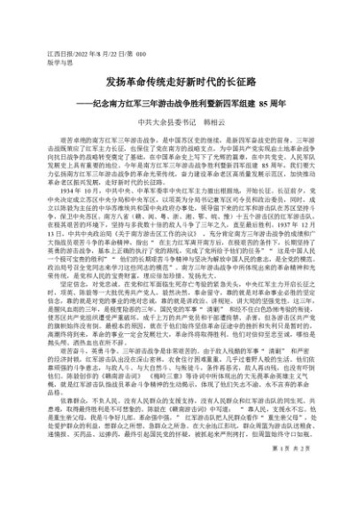 / 署名文章:2022.08.22中共大余县委书记韩相云:发扬革命传统走好新时代的长征路