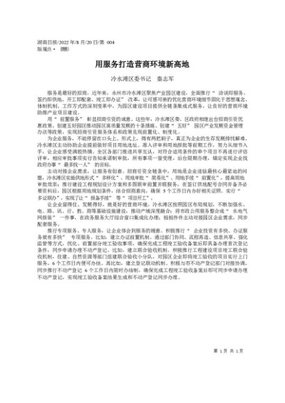 / 署名文章:2022.08.20冷水滩区委书记秦志军:用服务打造营商环境新高地