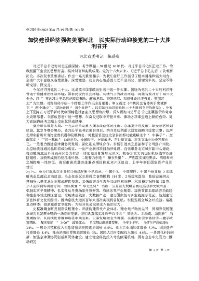 署名文章:2022.08.19河北省委书记倪岳峰:加快建设经济强省美丽河北以实际行动迎接党的二十大胜利召开