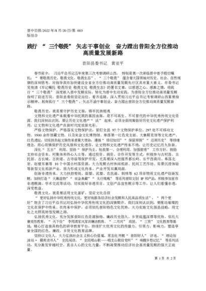 署名文章:2022.08.20昔阳县委书记黄亚平:践行三个敬畏矢志干事创业奋力蹚出昔阳全方位推动高质量发展新路