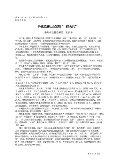 / 署名文章:2022.08.16中共单县县委书记耿振华:争做经济社会发展排头兵