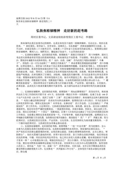 / 署名文章:2022.08.16周村区委书记、文昌湖省级旅游度假区工委书记李德刚:弘扬焦裕禄精神走好新的赶考路