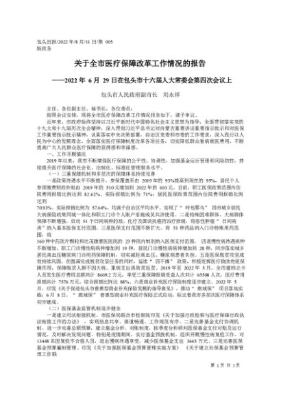 署名文章:2022.08.11包头市人民政府副市长刘永祥:关于全市医疗保障改革工作情况的报告