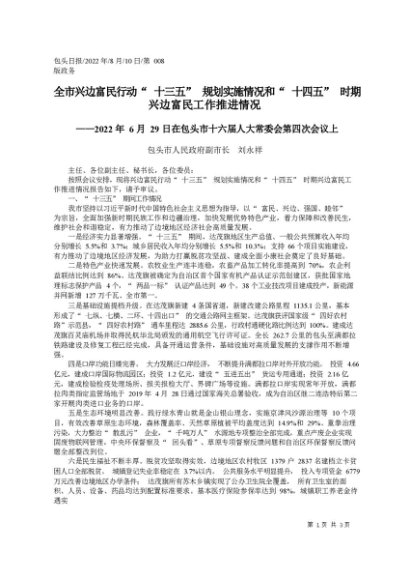 署名文章:2022.08.10包头市人民政府副市长刘永祥:全市兴边富民行动十三五规划实施情况和十四五时期兴边富民工作推进情况
