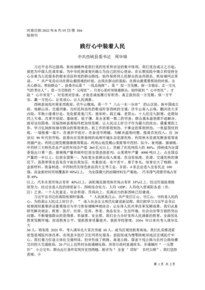 署名文章:2022.08.15中共西峡县委书记周华锋:践行心中装着人民