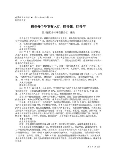 署名文章:2022.08.13四川省巴中市平昌县县长张勋:确保每个环节有人盯、盯得住、盯得牢