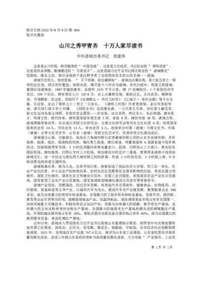 / 署名文章:2022.08.04中共诸城市委书记张建伟:山川之秀甲青齐十万人家尽读书