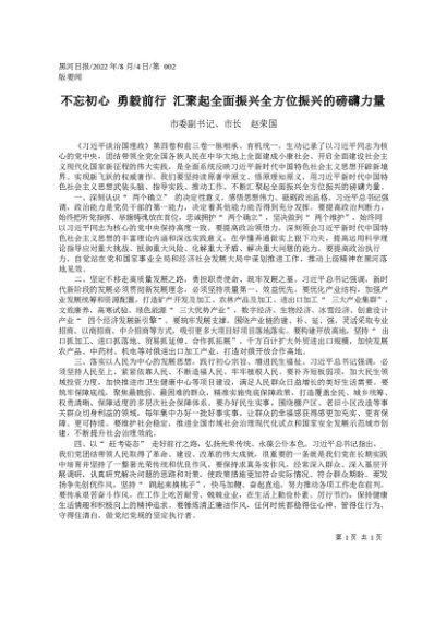 署名文章:2022.08.04市委副书记、市长赵荣国:不忘初心勇毅前行汇聚起全面振兴全方位振兴的磅礴力量