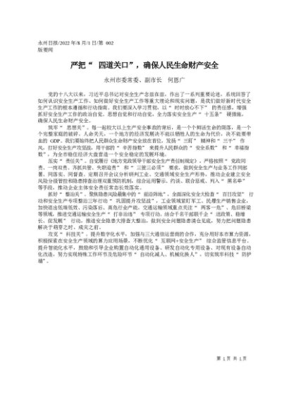 署名文章:2022.08.01永州市委常委、副市长何恩广:严把四道关口,确保人民生命财产安全