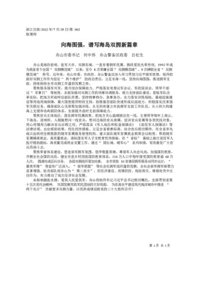 / 署名文章:2022.07.29舟山市委书记何中伟舟山警备区政委吕社生:向海图强,谱写海岛双拥新篇章