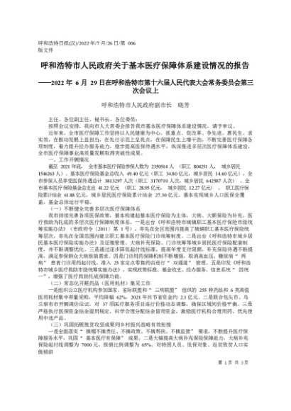 署名文章:2022.07.26呼和浩特市人民政府副市长晓芳:关于基本医疗保障体系建设情况的报告
