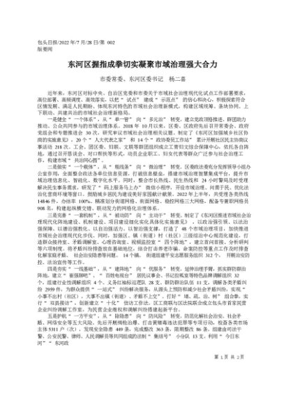 署名文章:2022.07.28市委常委、东河区委书记杨二喜:东河区握指成拳切实凝聚市域治理强大合力