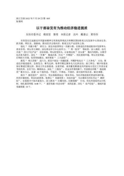 署名文章:2022.07.29东阳市委书记楼琅坚本报记者沈吟戴睿云黄珍珍:以干部奋发有为推动经济稳进提质