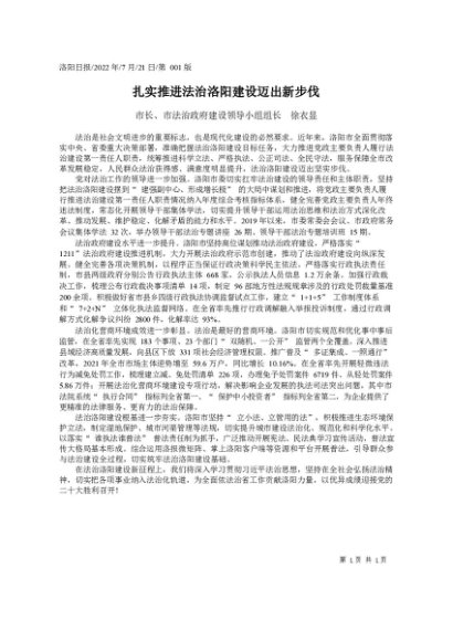 署名文章:2022.07.21市长、市法治政府建设领导小组组长徐衣显:扎实推进法治洛阳建设迈出新步伐