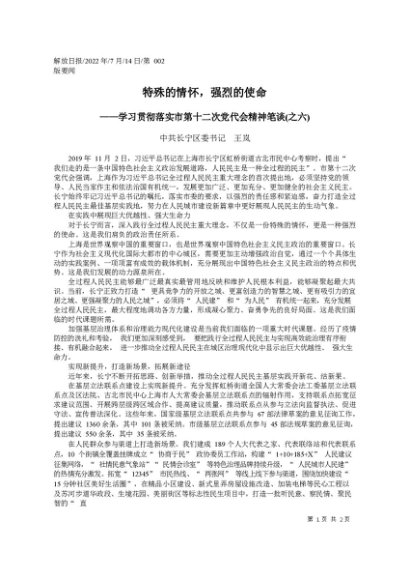 署名文章:2022.07.14中共长宁区委书记王岚:特殊的情怀,强烈的使命