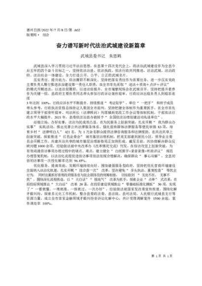署名文章:2022.07.08武城县委书记朱恩鹤:奋力谱写新时代法治武城建设新篇章