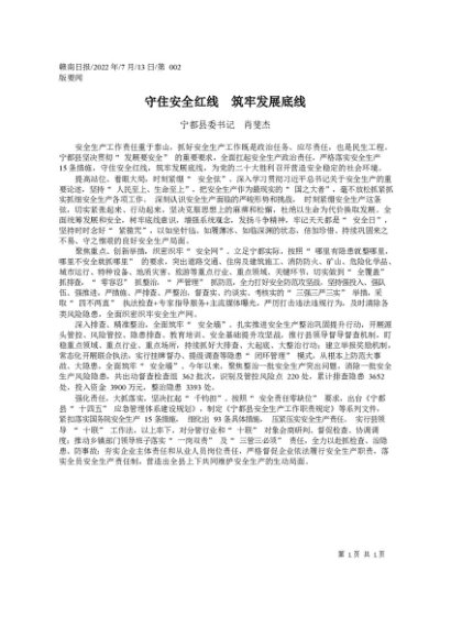署名文章:2022.07.13宁都县委书记肖斐杰:守住安全红线筑牢发展底线