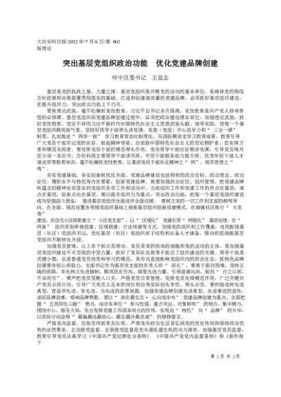 / 署名文章:2022.07.06呼中区委书记王显志:突出基层党组织政治功能优化党建品牌创建