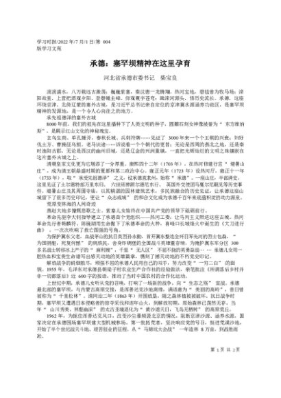 署名文章:2022.07.01河北省承德市委书记柴宝良:承德:塞罕坝精神在这里孕育