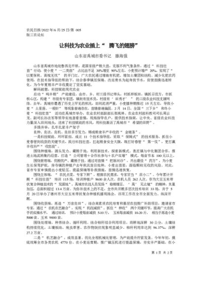 / 署名文章:2022.06.25山东省禹城市委书记滕海强:让科技为农业插上腾飞的翅膀