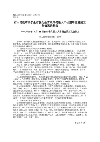 / 署名文章:2022.06.24副市长:市人民政府关于全市优化生育政策促进人口长期均衡发展工作情况的报告