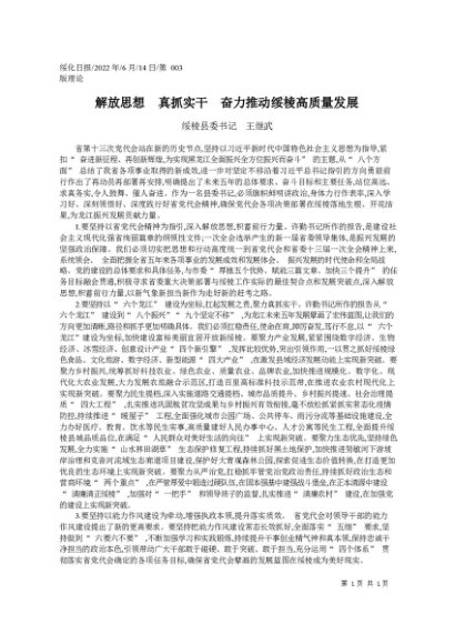 署名文章:2022.06.14绥棱县委书记王继武:解放思想真抓实干奋力推动绥棱高质量发展
