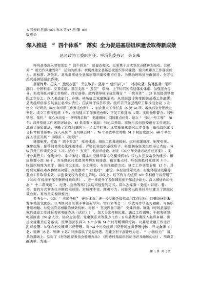 署名文章:2022.06.15地区政协工委副主任、呼玛县委书记孙金峰:深入推进四个体系落实全力促进基层组织建设取得新成效
